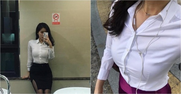 傲人上圍OL緊繃的白襯衫還有窄裙與絲襪